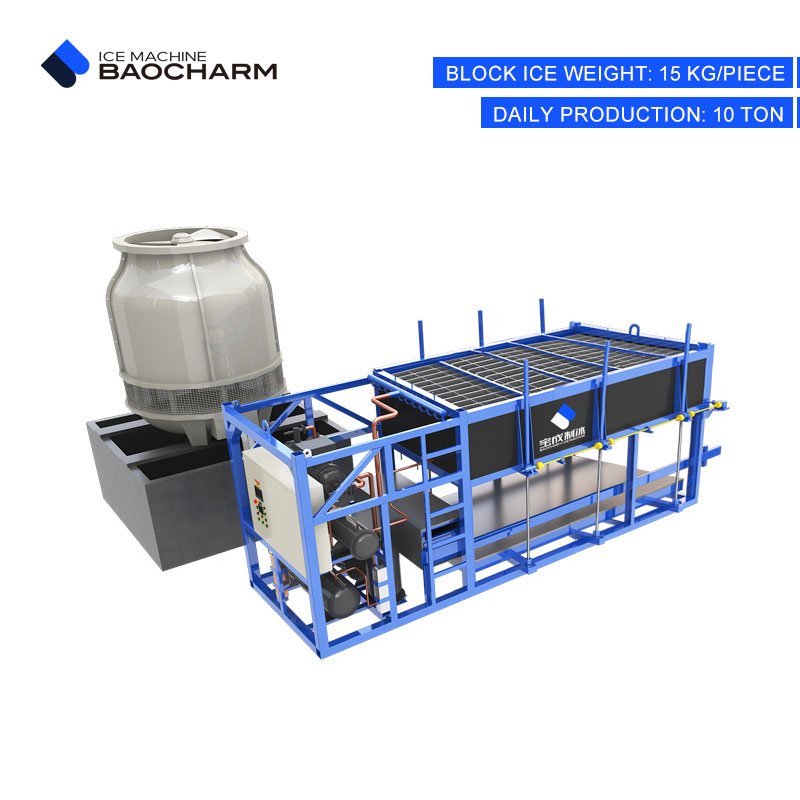 BCPY-2.5T-10T ng BAOCHARM Sistema ng Pabrika ng Ice Plant naghahatid ng maaasahan, mataas na kapasidad ng produksyon ng yelo para sa mga industriyang nangangailangan bulk block na yelo. Idinisenyo para sa tibay at kahusayan, ang sistemang ito ay gumagawa ng 10 tonelada ng 15KG na mga bloke ng yelo araw-araw, perpekto para sa pangingisda, pagproseso ng pagkain, at paglamig ng kemikal.